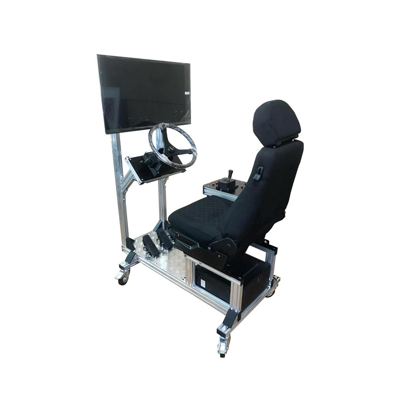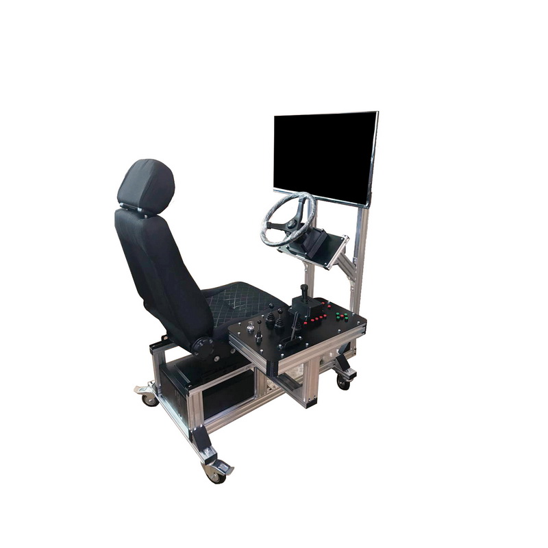 Конструкция учебного тренажера трактора выполнена из станочного алюминиевого профиля, обладает малым весом и высокой прочностью. Снабжена поворотными колесами с тормозами, что удобно для перемещения тренажера внутри помещения. Сборка производится по детальному руководству, с помощью простого инструмента (гаечные ключи на 10 и 13, крестовая отвертка) в течении примерно 4 часов.