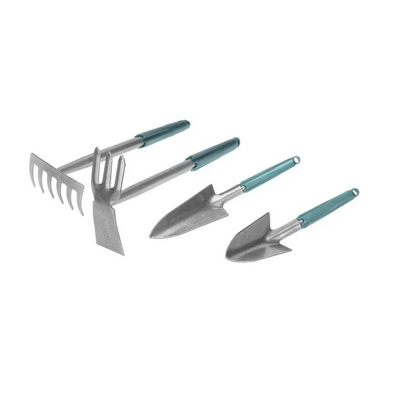 Набор садовых инструментов используется при выполнении работ в садах, огородах, цветниках и т.д. Применяется для подготовки почвы перед посадкой, смешивания грунта, формирования посадочных лунок и т.д. Позволяет с удобством сажать и пересаживать растения. В состав набора входят: узкий совок, широкий совок, мотыжка с 3 прямыми зубцами и грабли 6 прямыми зубцами. Рабочая часть инструментов и рукоятки выполнены из метала с порошковым покрытием, благодаря чему изделия обладают долговечностью, прочностью и надежностью.