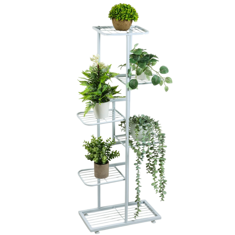 Подставка помогает эффективно использовать вертикальное пространство, превращая его в комфортную зону для комнатных растений или декоративных предметов. Высота 105 см позволяет разместить растения на разных уровнях, создавая эффектный визуальный ряд. Прочный металлический каркас. Обеспечивает надёжность и устойчивость даже при максимальной загрузке. Легко вписывается в любой стиль интерьера, добавляя лёгкости и чистоты. Позволяет удобно размещать как небольшие горшки, так и более крупные растения.