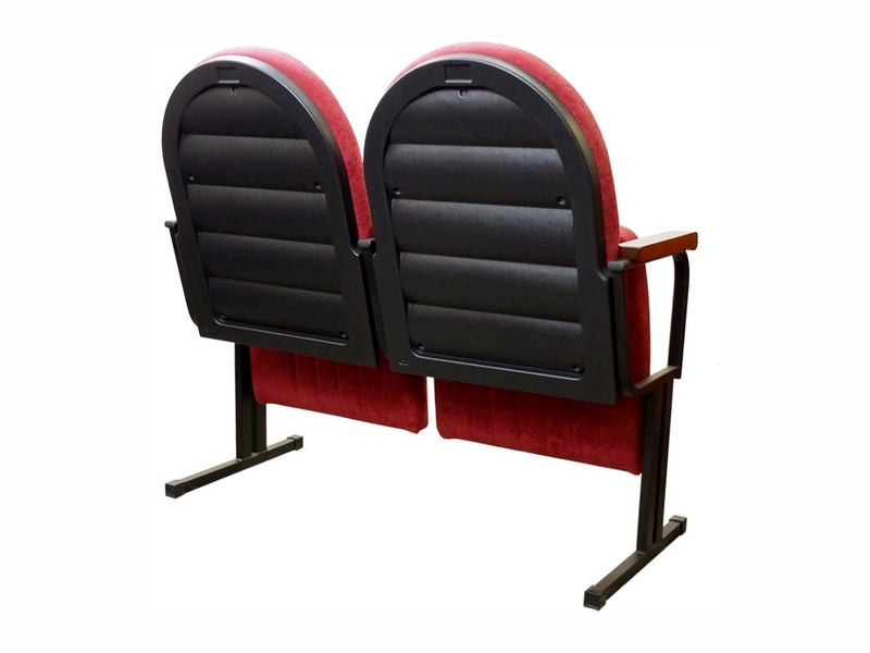 Сиденье откидное с возвратным механизмом гравитационного типа. Крепление сиденья к несущему каркасу кресла оснащенны осями вращения и упорными площадками с демпфирующими пластиковыми вставками для устранения стука «металл в металл». Подлокотник металлический с накладкой из массива бука.