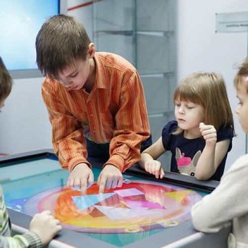 - Интерактивные столы и киоски – мультимедийные устройства для групповой работы, образовательных игр и презентаций.