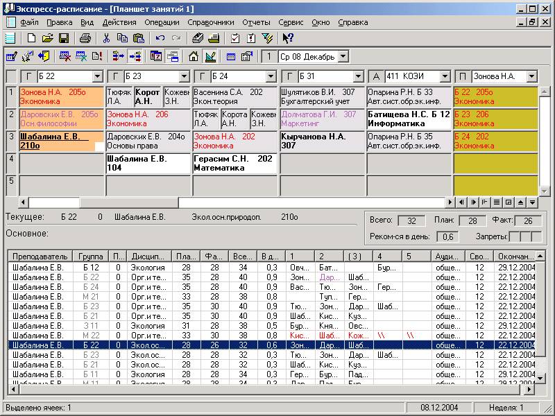 Идея программы «Экспресс-расписание» и ее названии – это быстрое расписание. За считанные минуты программа позволяет автоматически составить основное расписание с помощью УНИКАЛЬНОГО алгоритма с последующей удобной ручной корректировкой. Для самостоятельного изучения программы был разработан обучающий фильм, справочная информация (помощь) и руководство пользователя.
