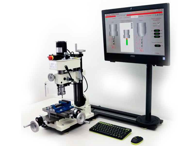 - Настольный фрезерно-сверлильный станок, оснащенный датчиками перемещения режущего инструмента и стола - 1 шт
