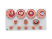 Эта модель представляет 12 стадий развития зародыша человека от момента оплодотворения до конца 2-го месяца беременности. Каждую стадию по отдельности можно снять с общего штатива и целенаправленно использовать для обучения и тестирования специалистов-эмбриологов: