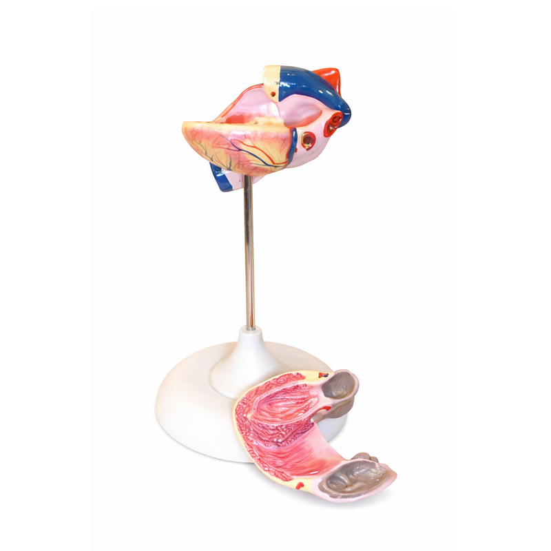 Модель высотой около 10 см, изготовлена из пластмассы и установлена на пластмассовой подставке. Модель является разборной, изображает внутреннее строение сердца человека. Модель раскрашена.