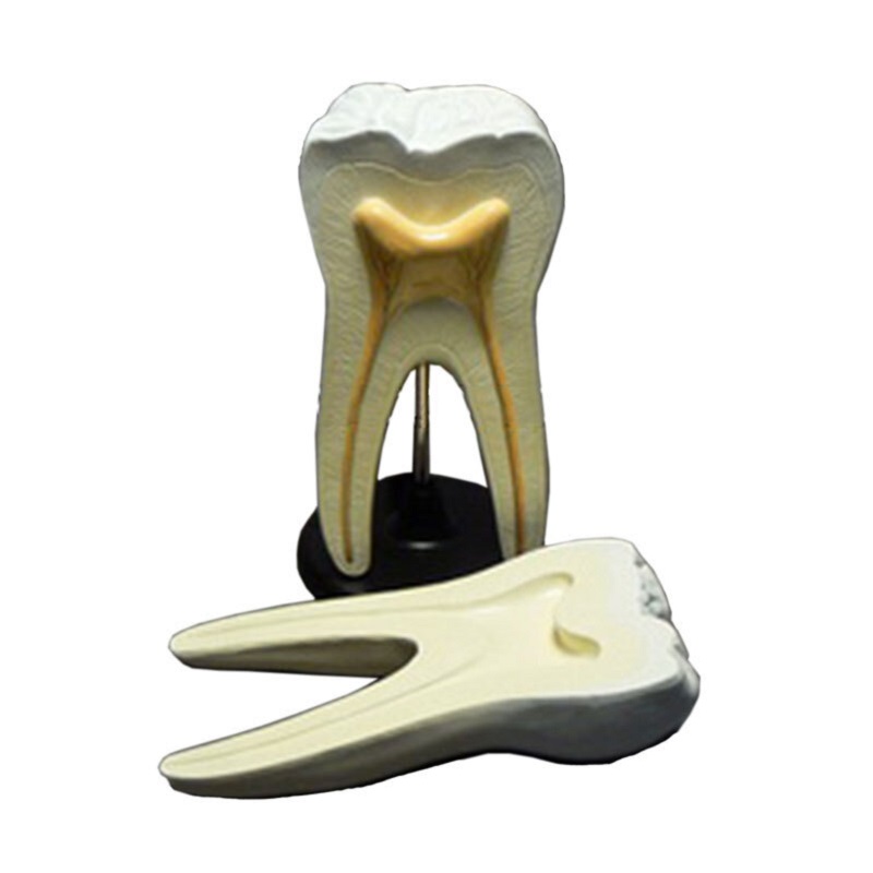 Модель изготовлена из пластмассы. Модель разборная, позволяет рассмотреть внешнее, и внутреннее строение зуба. На модели контрастными цветами выделены некоторые детали: