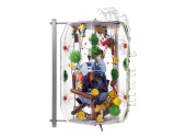 На модели представлена недифференцированная человеческая клетка, увеличенная в 40000 раз. С ее помощью можно изучать строение самой мелкой ячейки организма, способной к самостоятельному существованию, как под электронным микроскопом. На модели показаны клеточные органеллы, отвечающие за основные жизненные функции. Их расположение дает статическое представление динамического равновесия в клетке. Ядро, несколько митохондрий и лизосомы показаны в разрезе, так, что можно видеть их внутреннее строение. Модель закреплена на штативах.