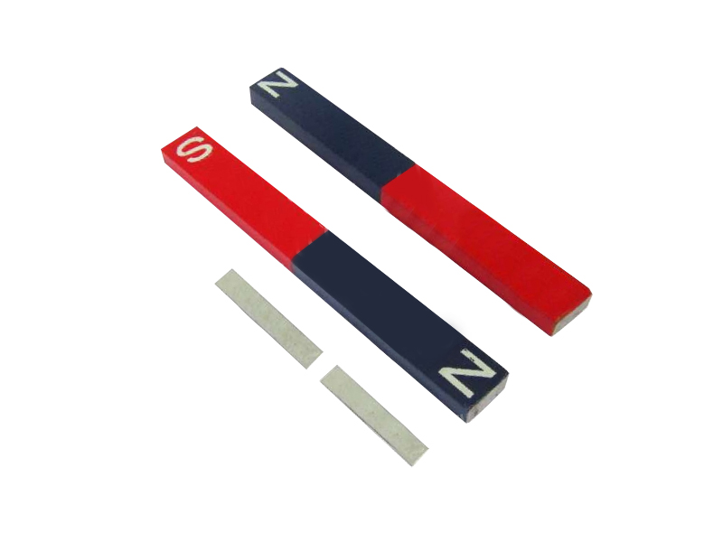 Магнит представляет собой намагниченный брусок прямолинейной формы. Изготовлен из полосовой магнитомягкой стали. Полюса магнита окрашены в разные цвета. Обозначения полюсов: N - северный, S – южный. Магнитные свойства приданы изделию в заводских условиях, путем помещения в сильное внешнее магнитное поле с последующей термической обработкой. Комплект состоит из двух полосовых магнитов.