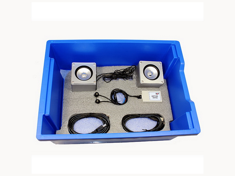 Для создания звукового поля нужной конфигурации используется комплект из двух динамиков с внешней звуковой платой, а для фиксации параметров звука - двухканальный датчик звука. Оба устройства подключаются к USB-входам персонального компьютера (в комплект не входит).