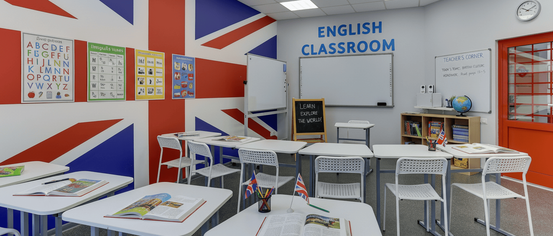 Это стенд идеально подойдет для начального уровня изучения английского языка. На нем показаны основные цвета (12 штук), дни недели, счет от 1 до 12, времена года и месяца.