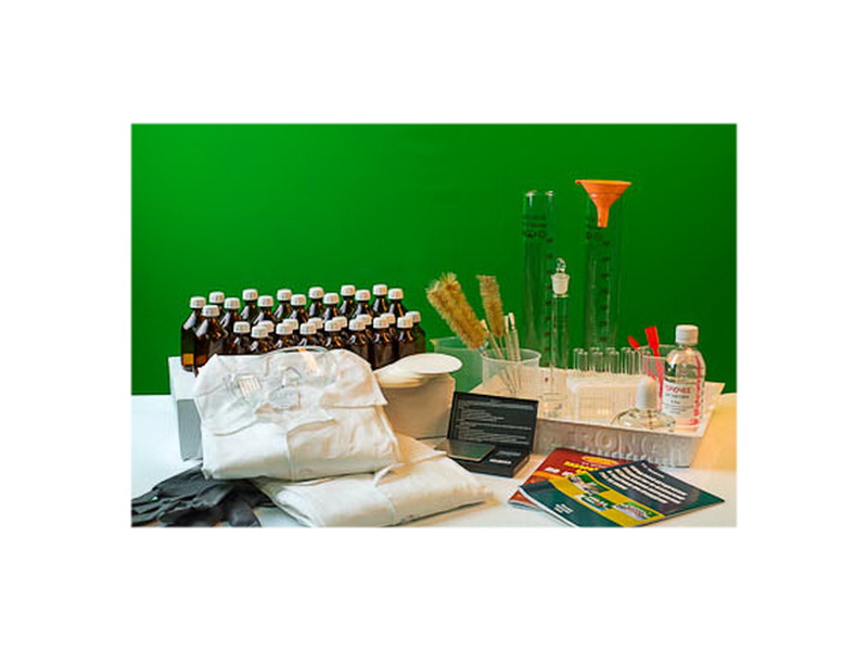 Комплектность: весы лабораторные электронные до 200 г – 1 шт., спиртовка лабораторная – 1 шт., воронка коническая – 1 шт., палочка стеклянная – 1 шт., пробирки ПХ-14 – 10 шт., стаканы высокие с носиком ВН-50 мл с меткой – 2 шт., цилиндр измерительный 50 мл стеклянный, с притертой крышкой – 1 шт., штатив (подставка) для пробирок на 10 гнезд – 1 шт., зажим пробирочный – 1 шт., ложки-шпатели – 3 шт., набор флаконов для хранения растворов и реактивов (флаконы темного стекла 100 мл с пробкой и крышкой – 30 шт. (5 комплектов по 6 шт.), флаконы темного стекла 30 мл с пробкой и крышкой – 60 шт. (10 комплектов по 6 шт.)), цилиндры измерительные с носиком 500 мл – 2 шт., стаканы высокие 500 мл – 3 шт., набор ершей для мытья посуды (ерши для мытья пробирок – 3 шт., ерши для мытья колб – 3 шт.), халаты белые х/б – 2 шт., перчатки резиновые химически-стойкие – 2 пары, защитные очки – 1 шт., фильтры бумажные Ø 9 см (100 шт.) – 1 уп.,горючее для спиртовок (0,33 л) – 1 уп., раздаточный лоток – 1 шт., учебное пособие "Нормативно-методическое руководство по безопасному использованию оборудования и реактивов при проведении ГИА по химии" (автор Т.С. Назарова – брошюра, 40 страниц – печать офсетная, обложка полноцветная) – 1 шт., учебное пособие "Лабораторные опыты по курсу химии" (автор Л. Е. Богданова - брошюра, 56 страниц - печать офсетная, обложка полноцветная) – 1 шт., руководство по эксплуатации – 1 шт., реактивы (44 различных веществ, используемых для составления комплектов реактивов при проведении экзаменационных экспериментов по курсу школьной химии): алюминий (гранулы) – 10 г, железо (стружка) – 20 г, цинк (гранулы) – 20 г, медь (проволока) – 10 г, оксид меди II (порошок) – 10 г, оксид магния (порошок) – 10 г, оксид алюминия (порошок) – 10 г, оксид кремния (порошок) – 10 г, соляная кислота (раствор 14 %) – 50 г, серная кислота (раствор 44 %) – 50 г, гидроксид натрия (для приготовления раствора) – 15 г, гидроксид кальция (для приготовления раствора) – 25 г, хлорид натрия (для приготовления раствора) – 5 г, хлорид лития (для приготовления раствора) – 5 г, хлорид кальция (для приготовления раствора) – 5 г, хлорид меди II (для приготовления раствора) – 5 г, хлорид алюминия (для приготовления раствора) – 10 г, хлорид железа III (для приготовления раствора) – 5 г, хлорид аммония (для приготовления раствора) – 5 г, хлорид бария (для приготовления раствора) – 5 г, сульфат натрия (для приготовления раствора) – 5 г, сульфат магния (для приготовления раствора) – 5 г, сульфат меди II (для приготовления раствора) – 5 г, сульфат железа II (для приготовления раствора) – 5 г, сульфат цинка (для приготовления раствора) – 5 г, сульфат аммония – 5 г, нитрат натрия – 5 г, карбонат натрия (для приготовления раствора) – 5 г, гидрокарбонат натрия (для приготовления раствора) – 5 г, фосфат натрия (для приготовления раствора) – 15 г, бромид натрия (для приготовления раствора) – 5 г, иодид натрия/калия (для приготовления раствора) – 5 г, нитрат бария (для приготовления раствора) – 5 г, нитрат кальция (для приготовления раствора) - 5 г, нитрат серебра (раствор 10 %) – 50 г, аммиак (раствор 12 %) – 50 г, пероксид водорода (раствор 12 %) – 50 г, метилоранж (раствор 0,1 %) – 50 г, лакмус синий (раствор 0,1 %) – 50 г, фенолфталеин (раствор 0,1 %) – 50 г, хлорид магния – 5 г, сульфат алюминия – 5 г, универсальный индикатор (бумага) – 1 набор, дистиллированная вода – 330 г.