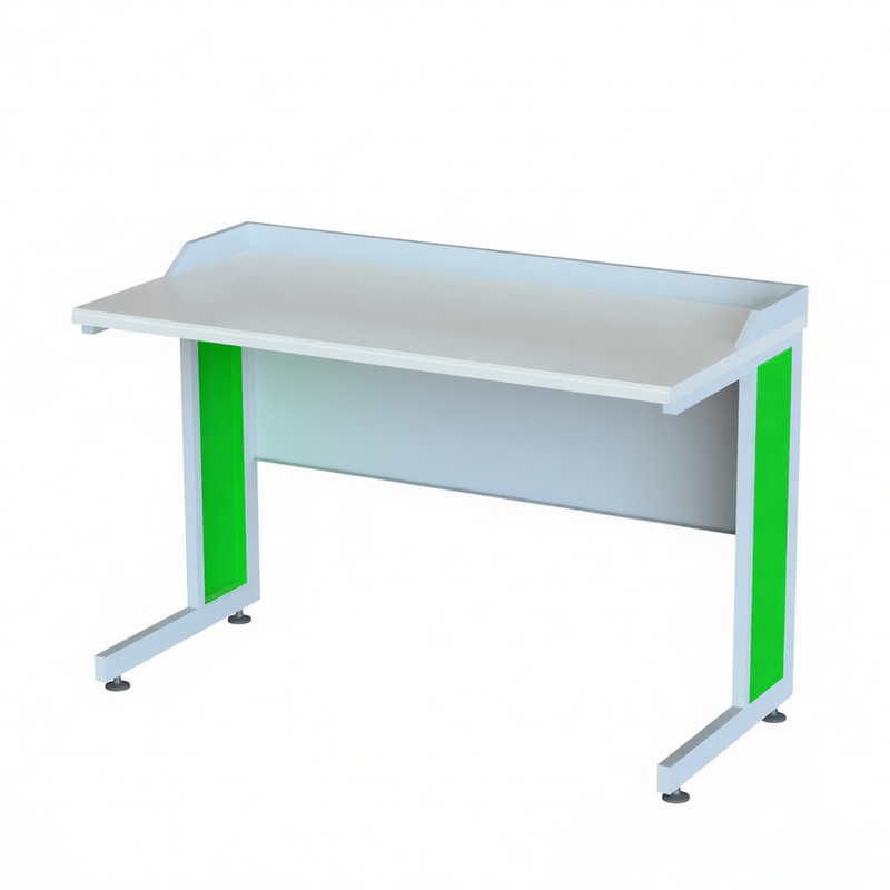 Стол лабораторный ученический с бортиком, предназначен для проведения уроков и лабораторных работ по химии, физики и биологии. Основание стола металлический каркас, столешница изготовлена из специальных химически стойких материалов, задняя стенка и надстройка лабораторного стола металлическая.