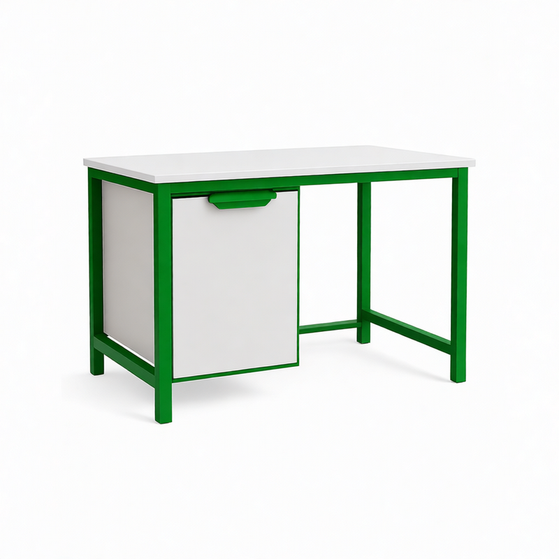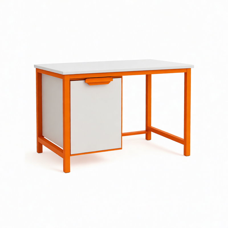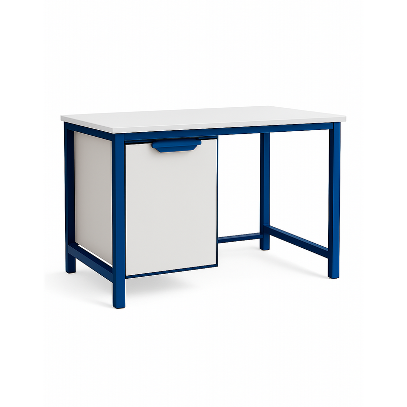 Столешница - 26 мм (покрытие пластик светло-серый), экраны ЛДСП - 16 мм. Кромка - 0,4 и 2 мм. М/каркас 50*25 и 25*25 мм.