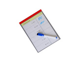 На лицевой стороне планшета закреплена пленка, под которую может помещаться карточка с заданиями. Ответы записываются на пленке маркером на водной основе. Надписи можно стирать специальным ластиком, закрепленным в колпачке.