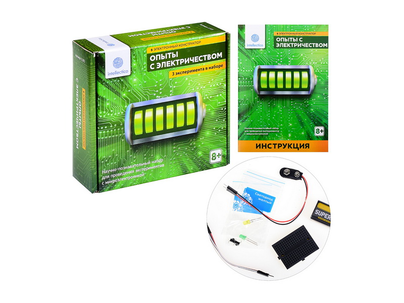 Набор "Опыты с электричеством" из серии "Электронный конструктор" поможет юному исследователю узнать о том, что такое электрический ток, как работает микроэлектроника, а также познакомит с простыми электрическими схемами. В состав набора входит макетная плата, которая позволит без пайки соединять между собой все необходимые электронные компоненты в нужной последовательности. Начинающий инженер сможет провести интересный эксперимент "Копилка для электричества", который покажет, как работают конденсаторы и зачем они нужны. В наборе 3 опыта с микроэлектроникой.