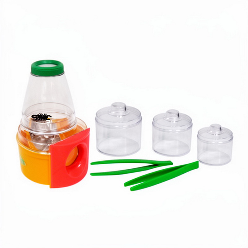 Набор миниатюрной лаборатории включает прочную колбу из пластмассы с плотно закрывающейся крышкой, в которой помещена лупа с 3-кратным увеличением, 3 стаканчика для лабораторных исследований и пинцет.