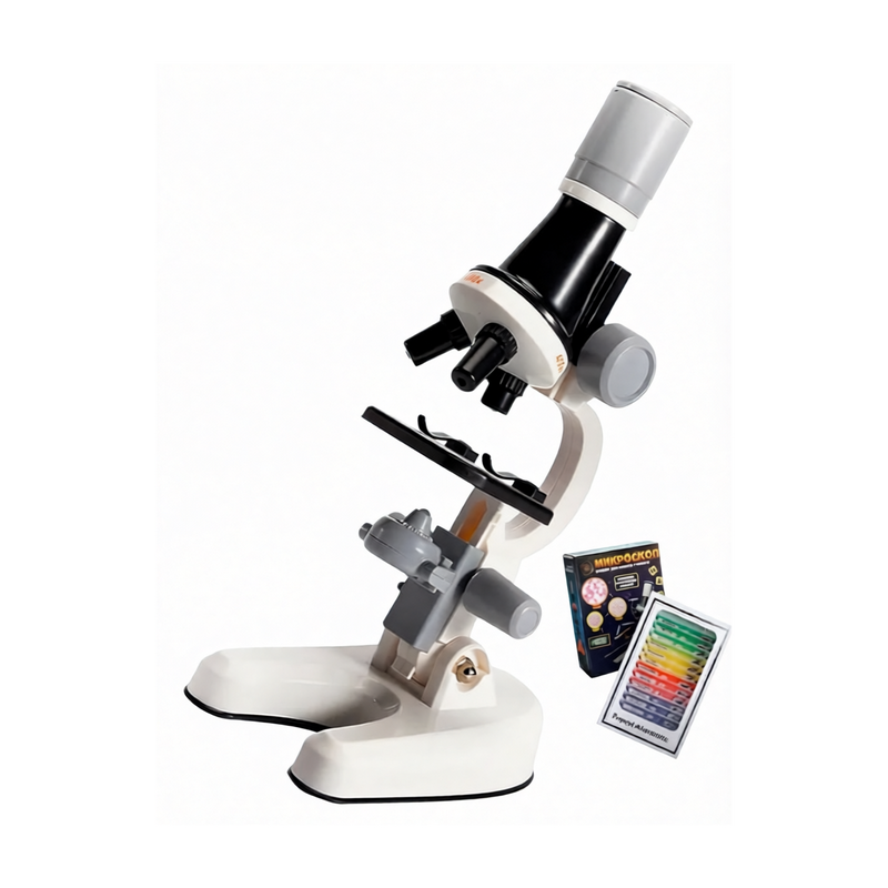Микроскоп для детей прекрасный инструмент в первых шагах в изучении окружающего мира. Школьный микроскоп легкий в использовании и простой в настройке, что является его главным преимуществом для ребенка. Детский микроскоп оснащен увеличительными линзами с разной кратностью увеличения 100, 400, 1200х, что позволяет рассмотреть различные объекты в микроскопе с высокой степенью детализации.