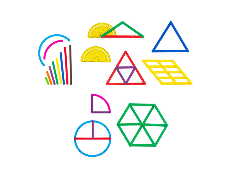 палочек позволяют сделать сектор, окружность и т.д. А 2 прозрачных пластиковых транспортира позволят детям изучать планарную геометрию.