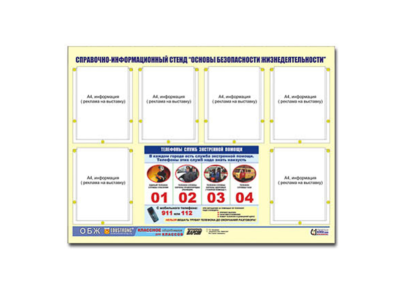 Стенд предназначен для длительного размещения необходимой информации в кабинете ОБЖ.