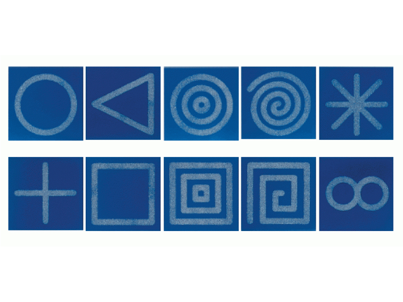 На каждую доску нанесен индивидуальный тактильно-рельефный рисунок, выполненный песком (фракция 0,5-1 мм), касаясь которого ребенок будет получать различные представления о форме объектов. Модуль предназначен для развития тактильных навыков, мелкой моторики, внимания, воображения.