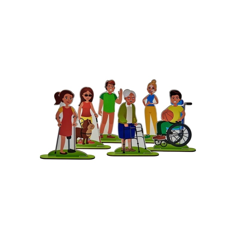 - Женщина с нарушением опорно-двигательного аппарата с приспособлением для ходьбы;