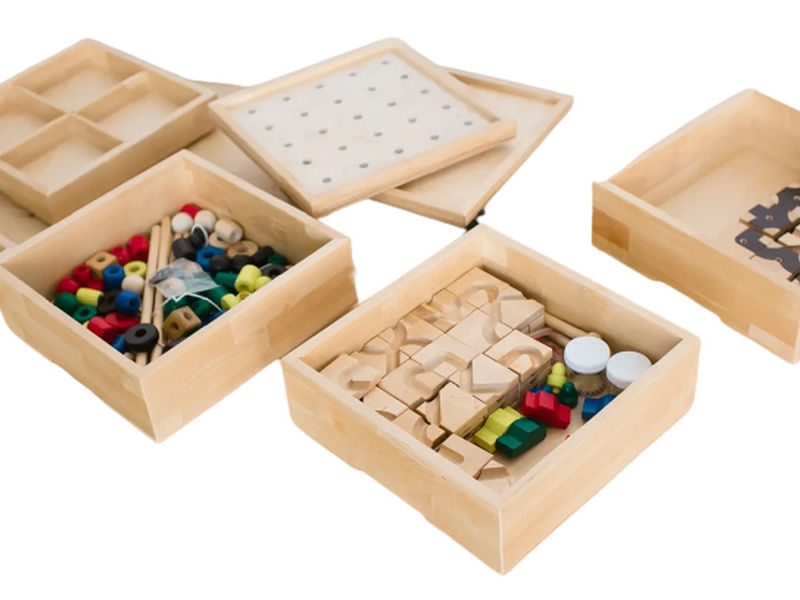 - Каждый модуль представляет собой кейс для хранения дидактических игрушек. Они собраны по темам. Пять модулей - пять тем.