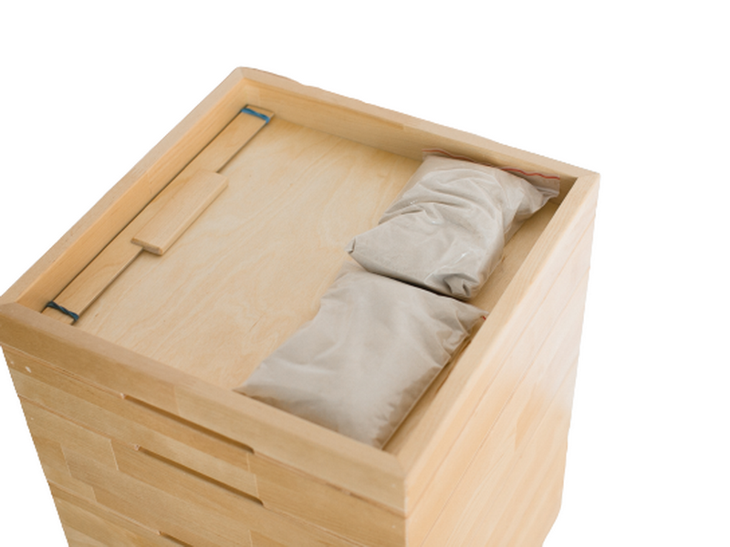 - Все детали хранятся в мобильной тумбочке с поворотными колесами. Она состоит из нескольких модулей, которые ставятся друг на друга.