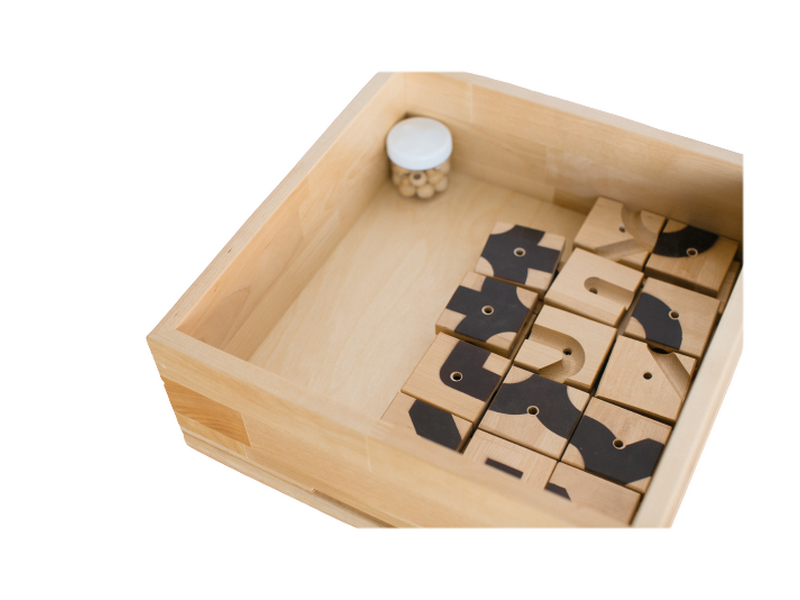 Первый кейс ориентирован на стимулирование пространственного мышления, логики, умения сравнивать и повторять за образцом. Задача ребенка - выложить узор из деревянных квадратиков. По дорожкам, которые образуются, можно водить пальчиком или машинкой. Ребенок учится быть внимательным. Игры с первым кейсом помогают подготовить руку к письму.