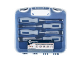 В наборе 4 плоские стамески шириной 6, 12, 18, 24 мм. Длина лезвия 140 мм. Рукоятки из двухкомпонентного материала обеспечивают крепкий хват без скольжения в ладони мастера.