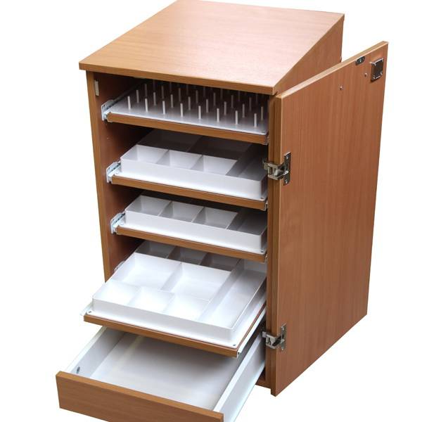 Тумба для хранения швейных принадлежностей может быть использована как отдельная единица, так и в составе нескольких модульных элементов.
