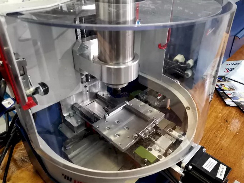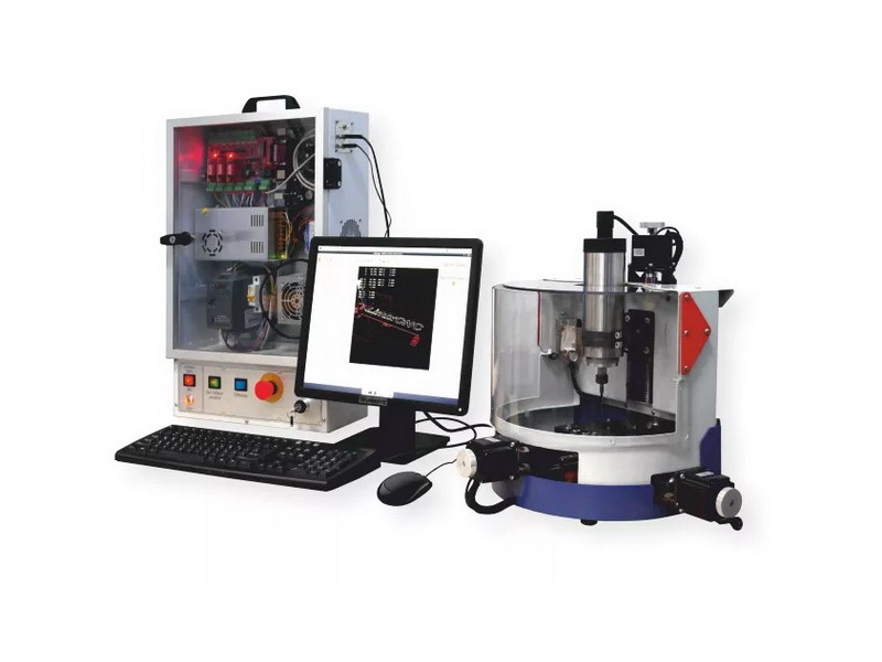Управляемый от персонального компьютера трехосевой вертикально-фрезерный станок с ЧПУ по конструкции соответствует промышленному стандарту. Предназначен для фрезерной и сверлильной обработки плоских и фасонных поверхностей заготовок, деталей, а также для гравировки. Программирование станка осуществляется учеником с персонального компьютера. Обрабатываемые материалы легкие сплавы, пластик, дерево.