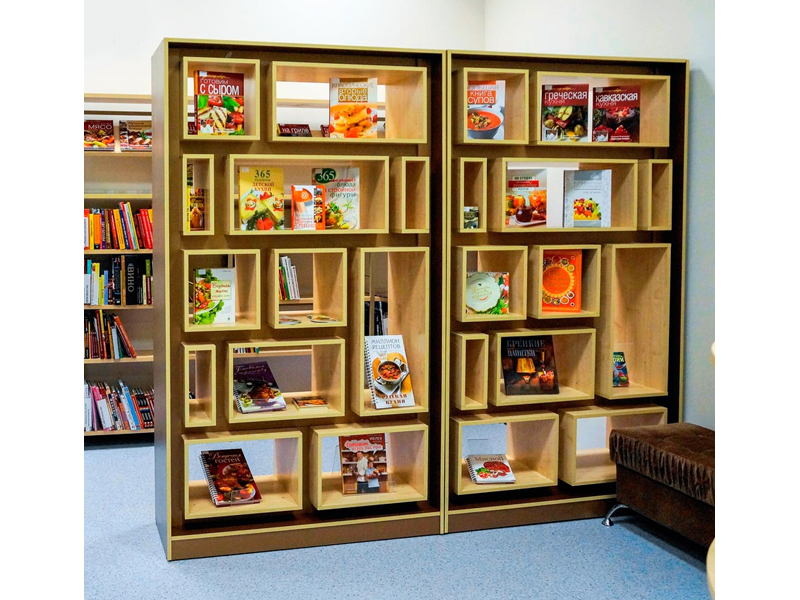 Выставочный книжный арт-стеллаж ПРЕМЬЕР. Книжные полки фиксированные. Опоры регулируемые М6.