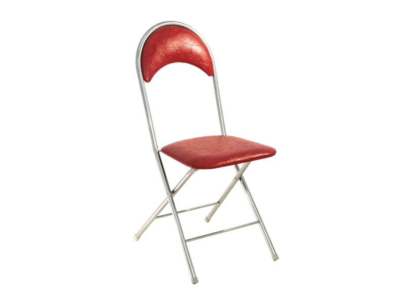 Стул складной с высокой спинкой. Стальной каркас, пластмассовые колпачки на ножках. Материал - фанера, покрытая поролоном и обтянутая сверху винилкожей. Высота в сложенном состоянии - 1100 мм.