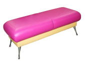 Каркас изготавливается из сухого хвойного бруса, шлифованной берѐзовой фанеры. Мягкий элемент пенополиуретан 25 плотности. Синтепон термоскреплѐнный 150 плотности. Опора прямая металл (хром) Н=100-150 мм.
