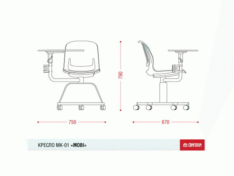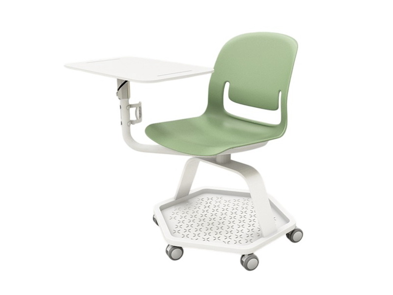 Для рюкзаков и предметов, которые не нужны во время занятий под сиденьем есть специальное место. Кроме того, стул оснащен складным столиком, на котором удобно расположить ноутбук или другие мобильные устройства, а также различные учебники и тетради. Он полностью регулируется и имеет шарнирную форму, что обеспечивает комфорт и одинаково подходит как для правшей, так и для левшей.