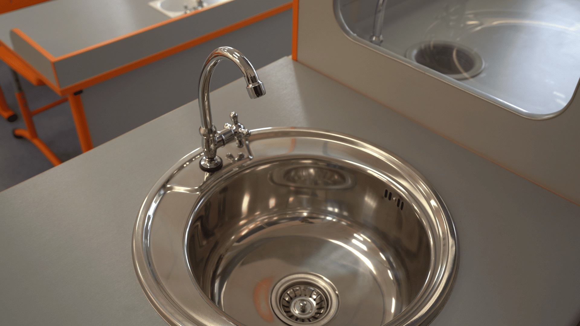 Стол лабораторный ученический с бортиком, предназначен для проведения уроков и лабораторных работ по химии, физики и биологии. Основание стола металлический каркас, столешница изготовлена из специальных химически стойких материалов, задняя стенка и надстройка лабораторного стола металлическая.