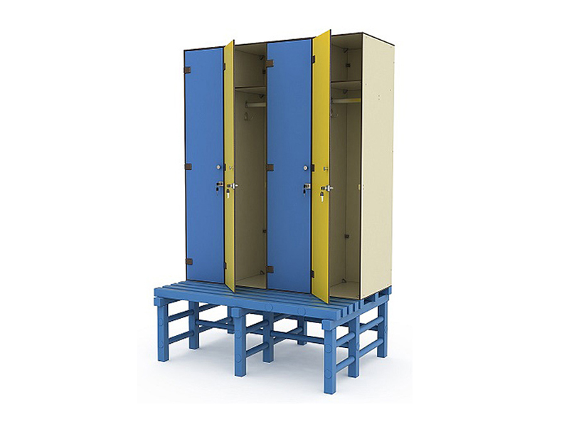 Шкаф для одежды, покрытие пластик HPL (4 секции,скамья)
