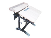 Особенности: Группа роста изменяется запатентованным механизмом полуавтоматической регулировки высоты при помощи газового лифта, регулировка угла наклона столешницы, пластиковые детали цветные, крючки, перфорированный фронтон, две столешницы, бортики.
