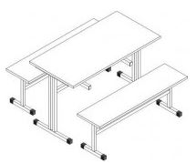 Стол обеденный 4-х местный, оборудованный двумя подвесными скамьями. Каркас изготовлен из металлической трубы квадратного сечения 25х25 мм, с полимерно-порошковой окраской в светло-серый цвет. Столешница стола выполена из пластика 16 мм., сидение скамьи из ЛДСП 16 мм.