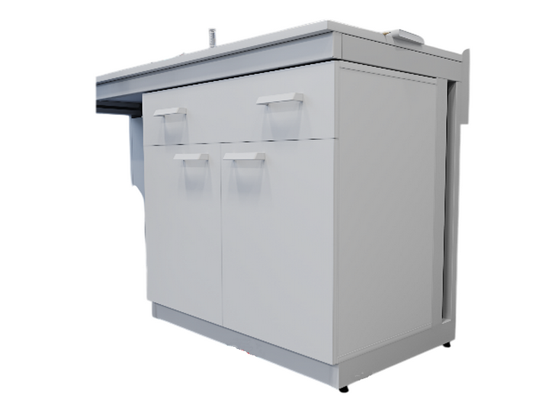 Тумба лабораторная встраиваемая (высокая) с дверками и ящиком имеет два варианта исполнения: