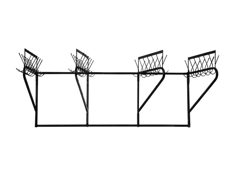 Особенности: Каркас стальной. Вешалка состоит из рамы и четырёх поворотных кронштейнов. На кронштейнах расположены 48 шляпных и 48 крюков для пальто (на каждом кронштейне 12+12 крюков). В базовую комплектацию входят декоративные пластиковые колпачки. Над крюками есть пластины для номеров.