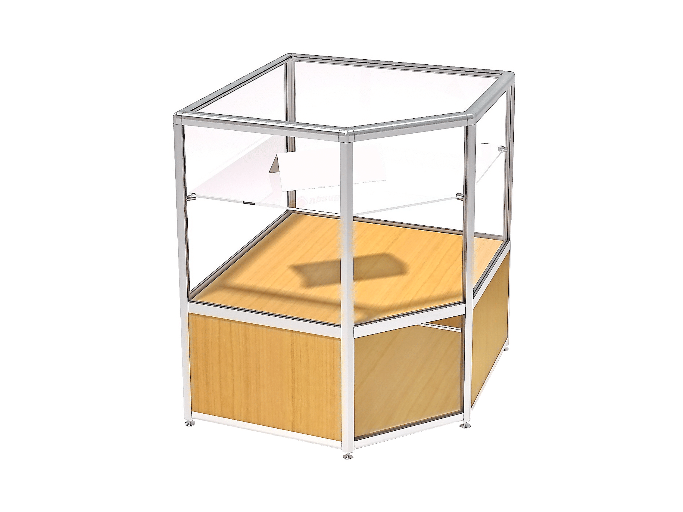 Витрина демонстрационная угловая с анодированным профилем (или по каталогу RAL) с дополнительной стеклянной полкой. Может использоваться в школьном музее.