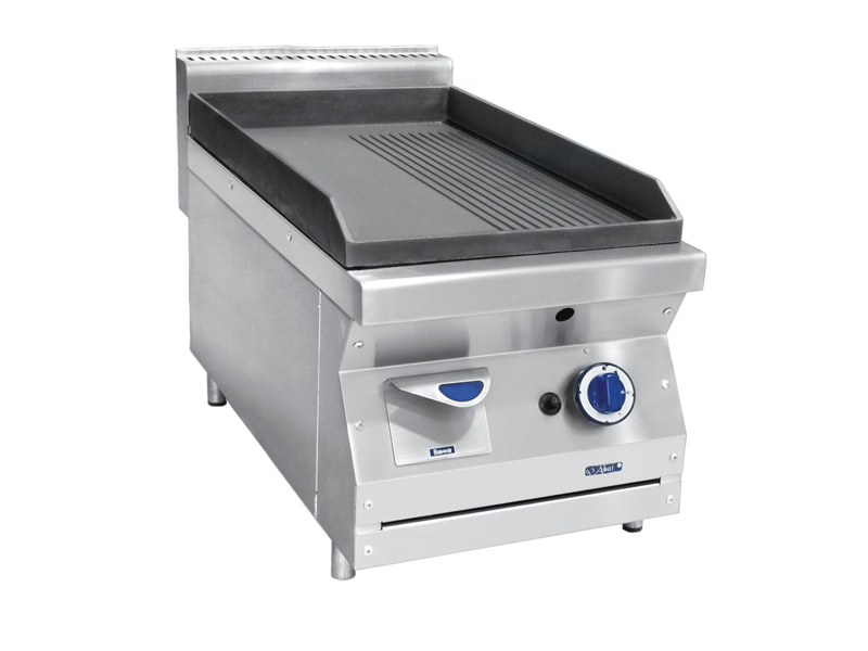 Работает как на природном, так и на сжиженном газе. Жарочная поверхность 394х648 мм имеет одну половину с гладкой поверхностью, другую с рифленой. На лицевой панели расположен лоток для сбора масла. В комплекте съемная форсунка под сжиженный газ. Пьезорозжиг. Регулируемые по высоте ножки.