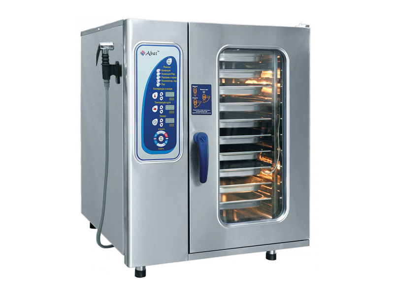 панель управления на русском языке, таймер до 10 часов, трехканальный температурный щуп, система регулировки влажности (от 0 до 100%), поддержание температуры в камере +/- 1°С, 5 скоростей вращения вентилятора, встроенная система охлаждения слива, душ для мойки, вентилируемая дверь духовки, двухходовой механизм открывания дверки, система закрывания двери "свободные руки", полуавтоматическая мойка.