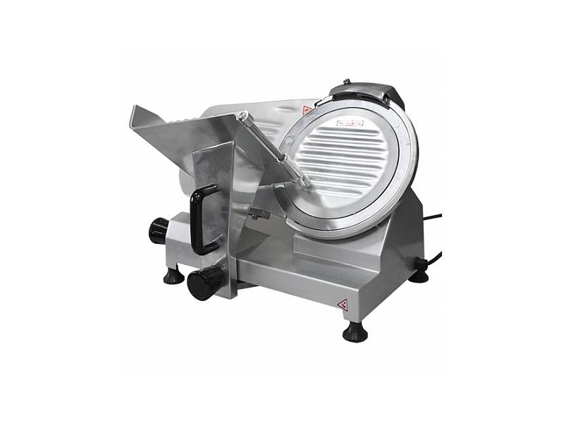 Слайсер JK-250A с диаметром ножа 250 мм и возможностью резать ломтики не более 0,2-15 мм. Выполнен из нержавеющей стали.