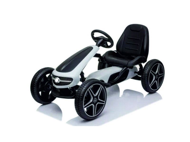 Четырехколесная конструкция очень устойчива и безопасна. Веломобиль оснащен рулем, крутя который, ребенок с легкостью