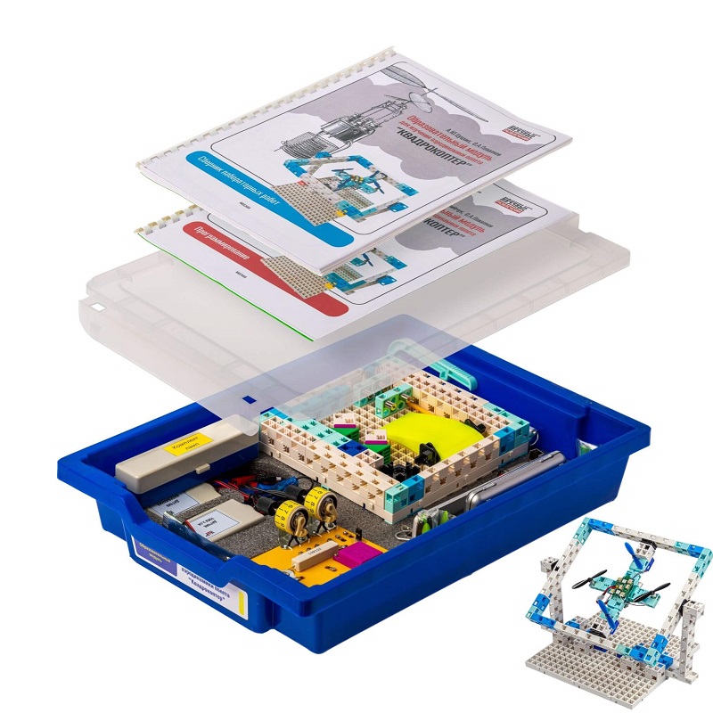 Набор предназначен для подробного ознакомления учащихся с основными понятиями аэродинамики на примере летательного аппарата вертолетной схемы, а также для обучения приемам программирования с применением датчиков и исполнительных механизмов.