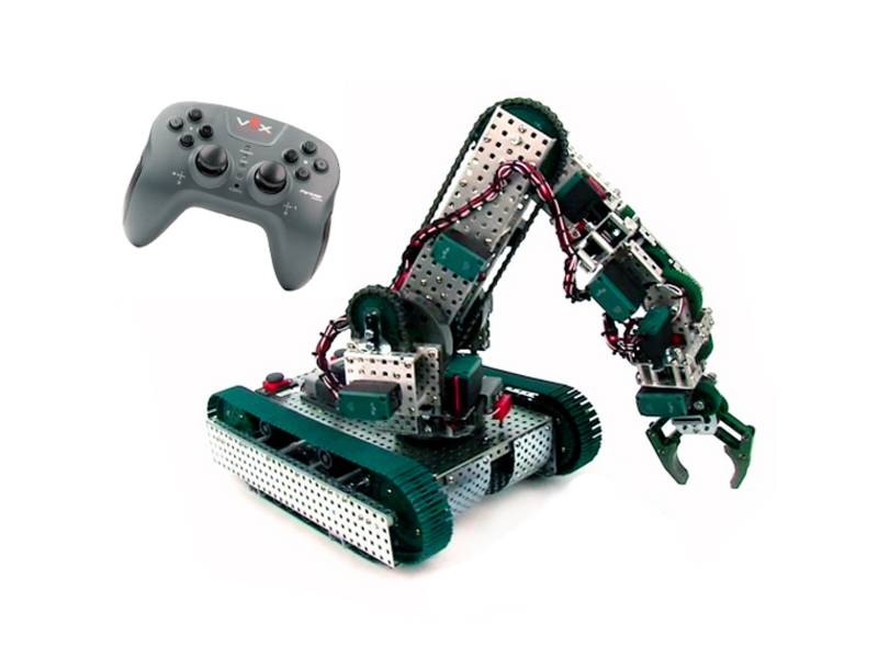 В состав набора входит: Набор Clawbot, контроллер Cortex® ARM®, VEXnet Джойстик и VEXnet Ключ 2.0, аккумуляторные батареи для робота и джойстика и зарядные устройства для них, Набор Мехатроника Add-On Kit (более 100 компонентов, в т.ч. 1 мотор, 2 датчика, колеса для всенаправленного движения, гусенечные траки, цепные передачи, звездочки, зубчатые рейки и т. д.), Набор Программирование Add-On Kit (2 мотора, 7 типов датчиков, провода, комплект колес для всенаправленного движения).