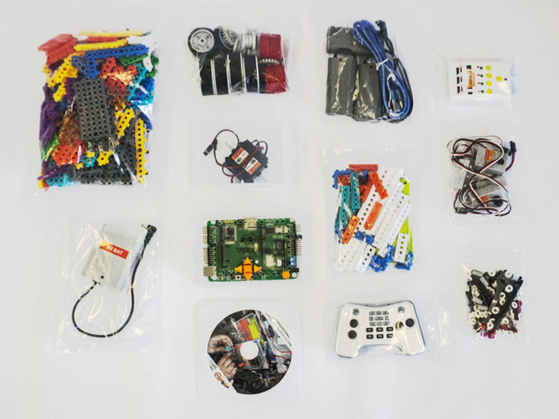 - Две материнские платы (контроллера), 1 прошитая четыремя алгоритмами с возможностью дистанционного управления и 1 программируемая (визуализированная среда РОБОТРЕК ПО).