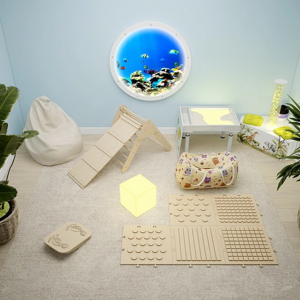 Современный дизайн сочетает натуральные материалы, световые элементы и мягкие зоны*. Подходит для детей ОВЗ.